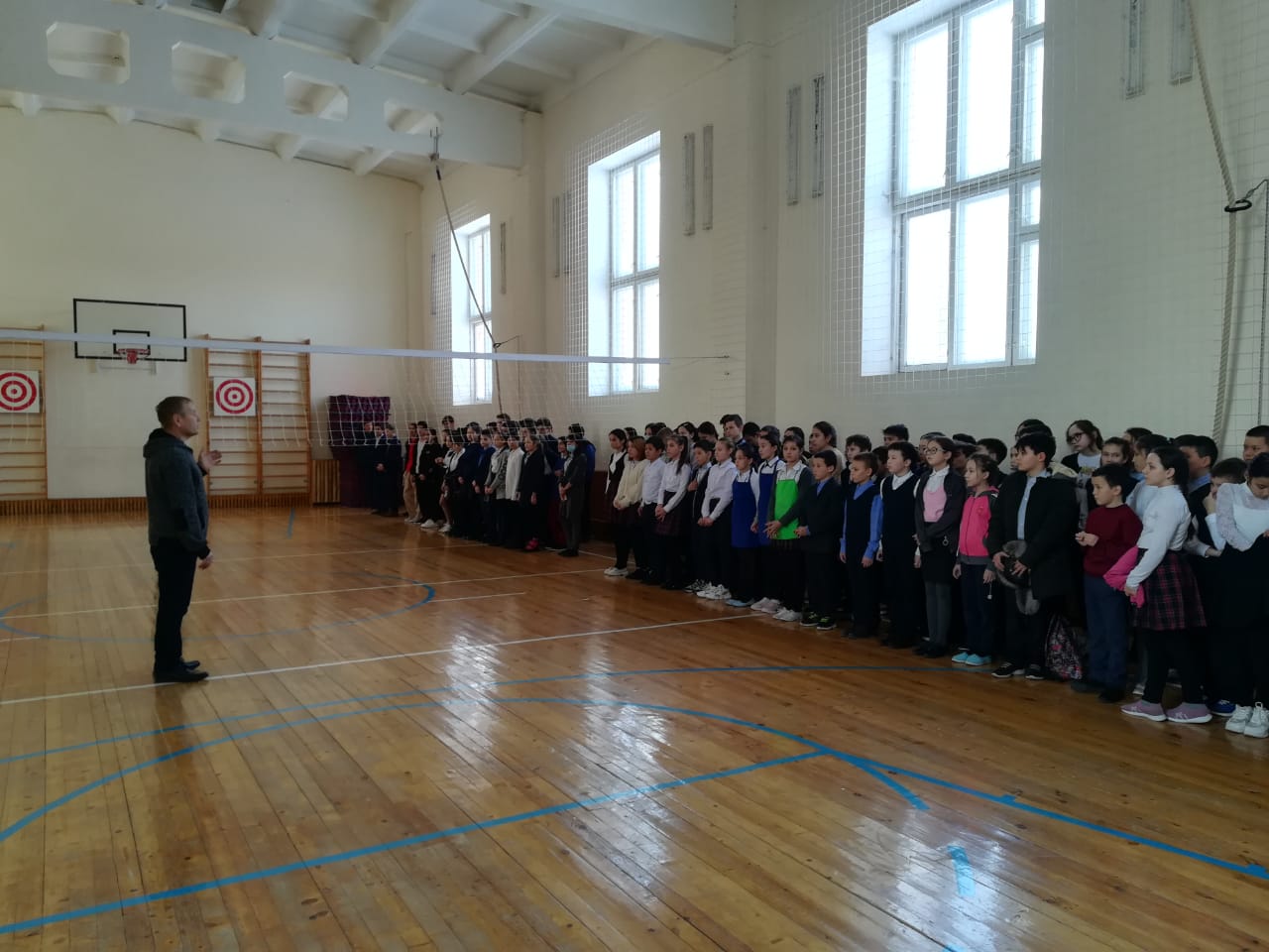 Охрана при получении условного сигнала о минировании ОУ «сообщила» в полицию по тел. 02, для учащихся был дан сигнал тревоги – 3 коротких звонка. Все обучающиеся были сопровождены в спортзал в связи с холодными погодными условиями.